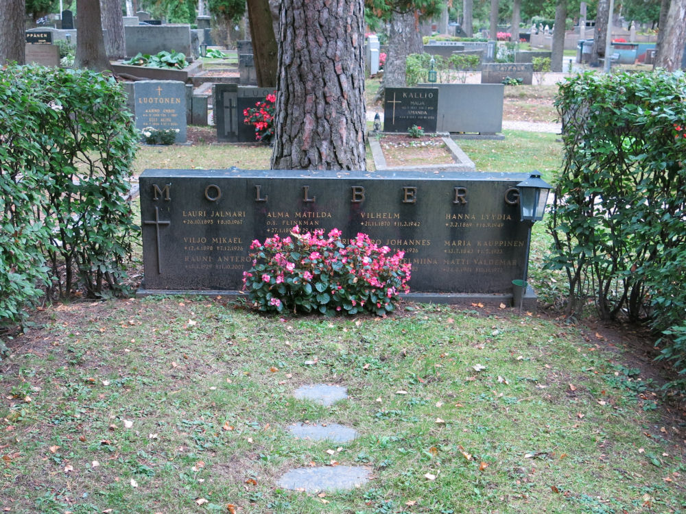 Elokuvaohjaaja Rauni Mollbergin sukuhauta Ahveniston hautausmaalla. Ohjaustöistä mainittakoon vaikka: Maa on syntinen laulu, Siunattu hulluus ja Tuntematon sotilas (uusi).