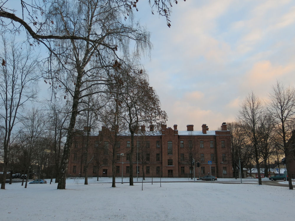 Suomen Kasarmien esikuntarakennus. Alueen vanhat sotilasrakennukset on pikku hiljaa muutettu asuinrakennuksiksi.