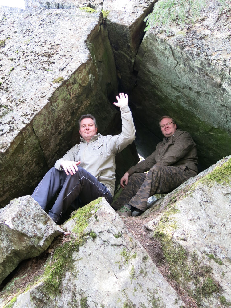 Esan kanssa Stålbergin kivillä Kalvolan Rimmilässä. Nimensä siirtolohkareet ovat saaneet Stålberg nimiseltä mieheltä, joka piileskeli muinoin kivien muodostamissa luolissa ilmeisesti poliisilta piilossa.