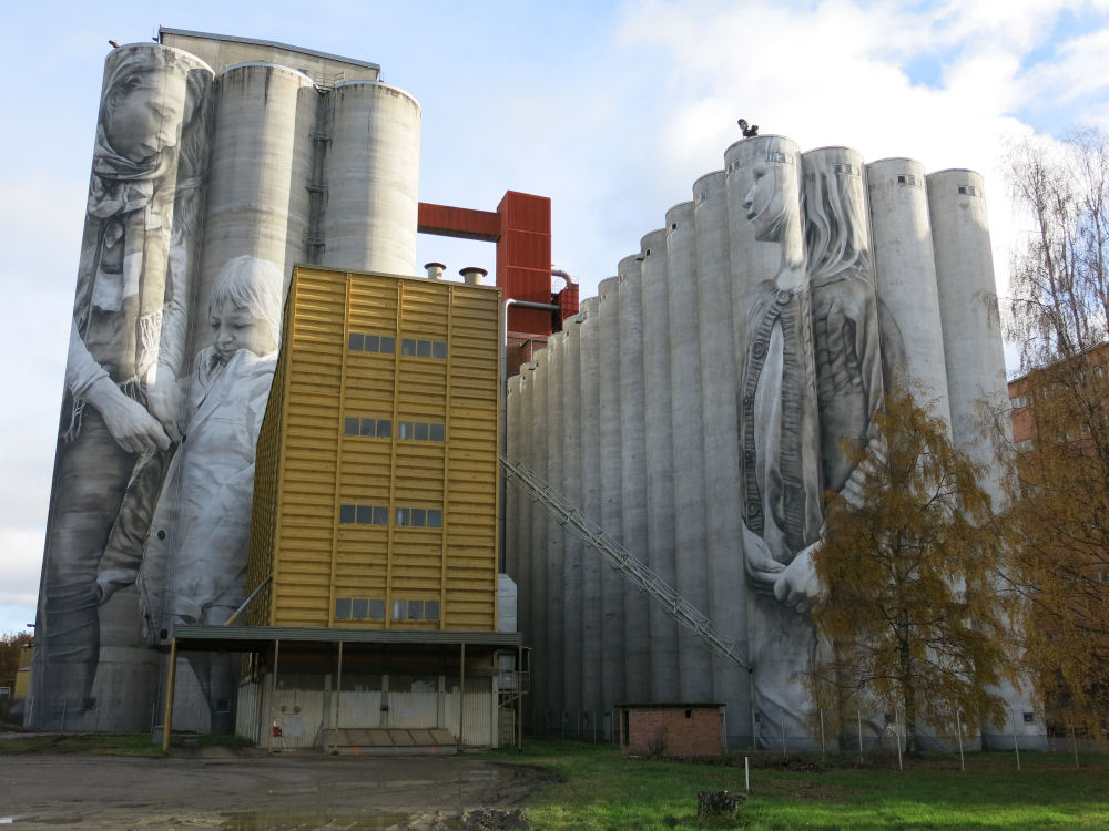 Australialainen taiteilija Guido van Helten maalasi Kantolan vanhojen viljasiilojen kylkeen Pohjoismaiden suurimman, 50 metrisen, muraalin.