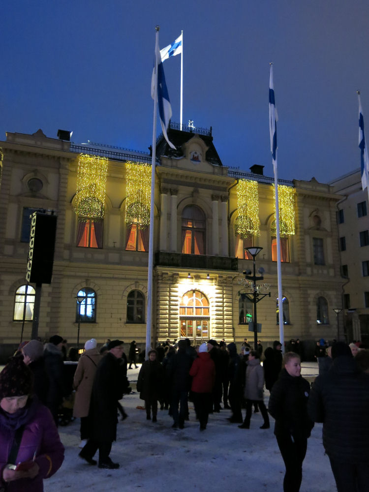 Raatihuoneen edessä tori täynnä ihmisiä.