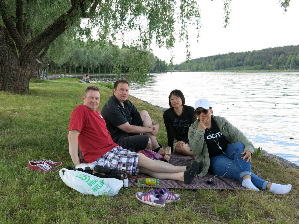Tuttu piknikpaikka Linnanrannassa. Juha ja Ya-hui jälleen seurana.