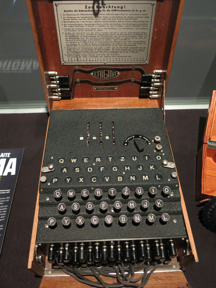 Saksalainen salauslaite Enigma näytillä tykistömuseossa.