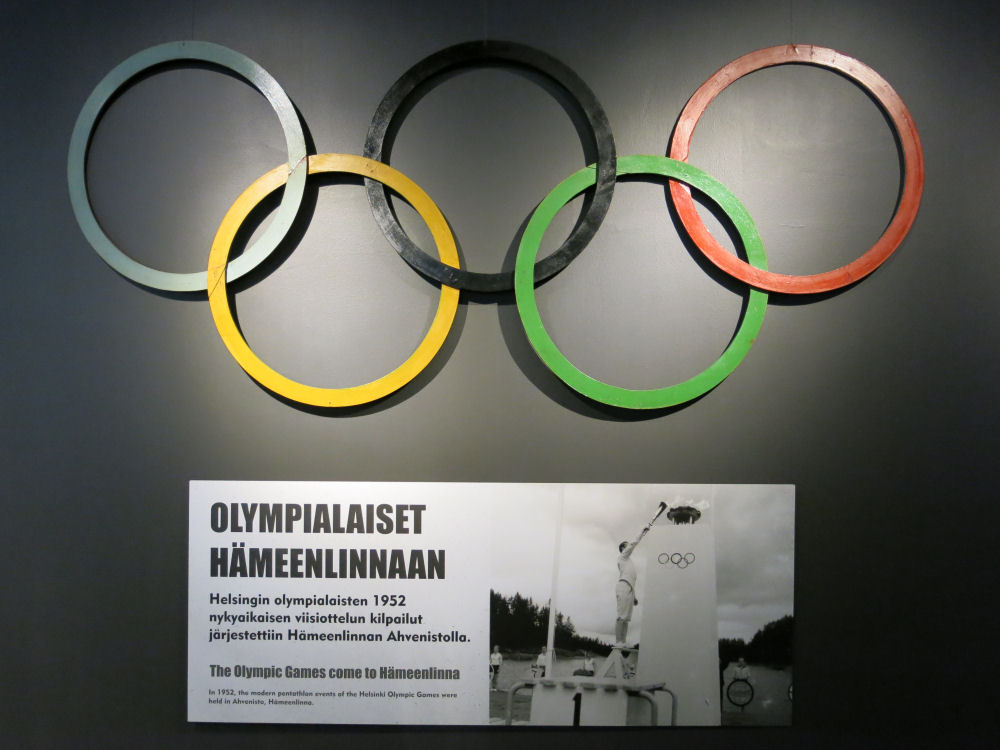 Ahvenistonjärvellä käytetyt olympiarenkaat vuodelta 1952 nähtävillä kaupunginmuseossa.
