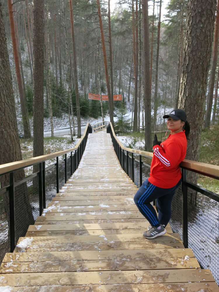 May testaamassa Ahvenistonjärven uusia kuntoportaita.