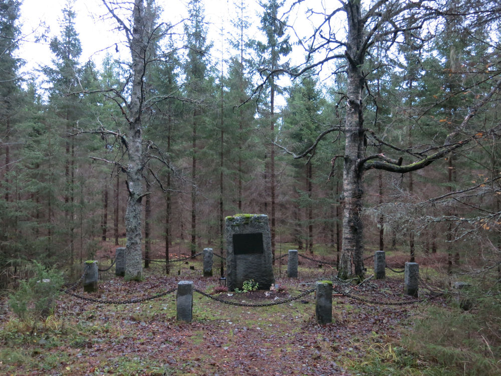 käännytään 90 astetta vasemmalle metsään. Muutaman kymmenen metrin päässä on muistomerkki.