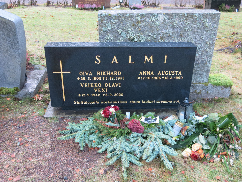 Sanataiteilija Vexi Salmen hauta Ahveniston hautausmaalla.