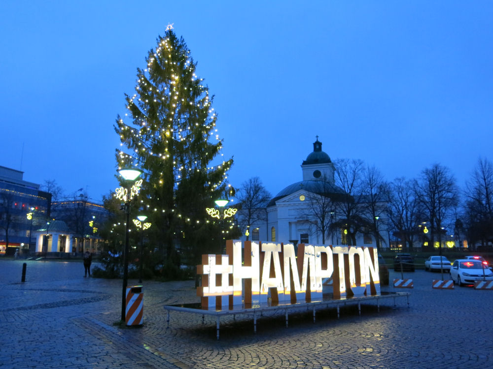 Torin kuusi, kirkko ja jotenkin korni Hämpton-teksti. Kyllä Hämeenlinna on Hämeenlinna!