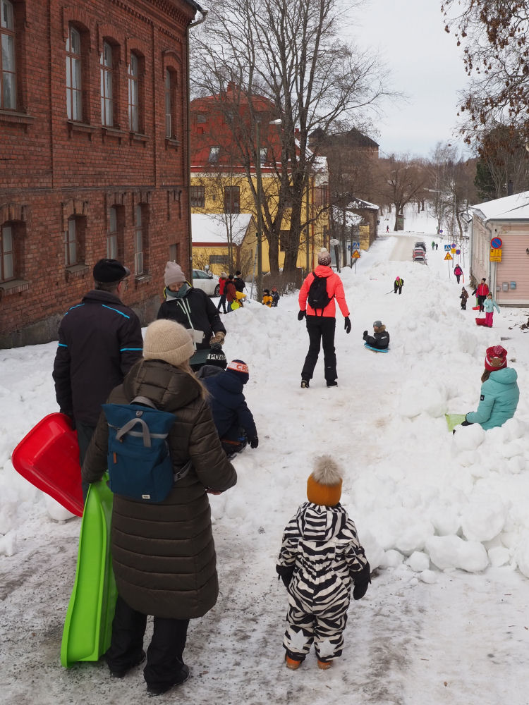 Palanderin talon talviriehassa lapset saivat laskea Linnankatua alas.