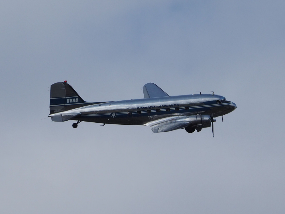 Aeron (nyk. Finnair) vanha DC-3 kävi tekemässä näytösluontoisesti pari kierrosta Jukolan/Luolajan yllä.