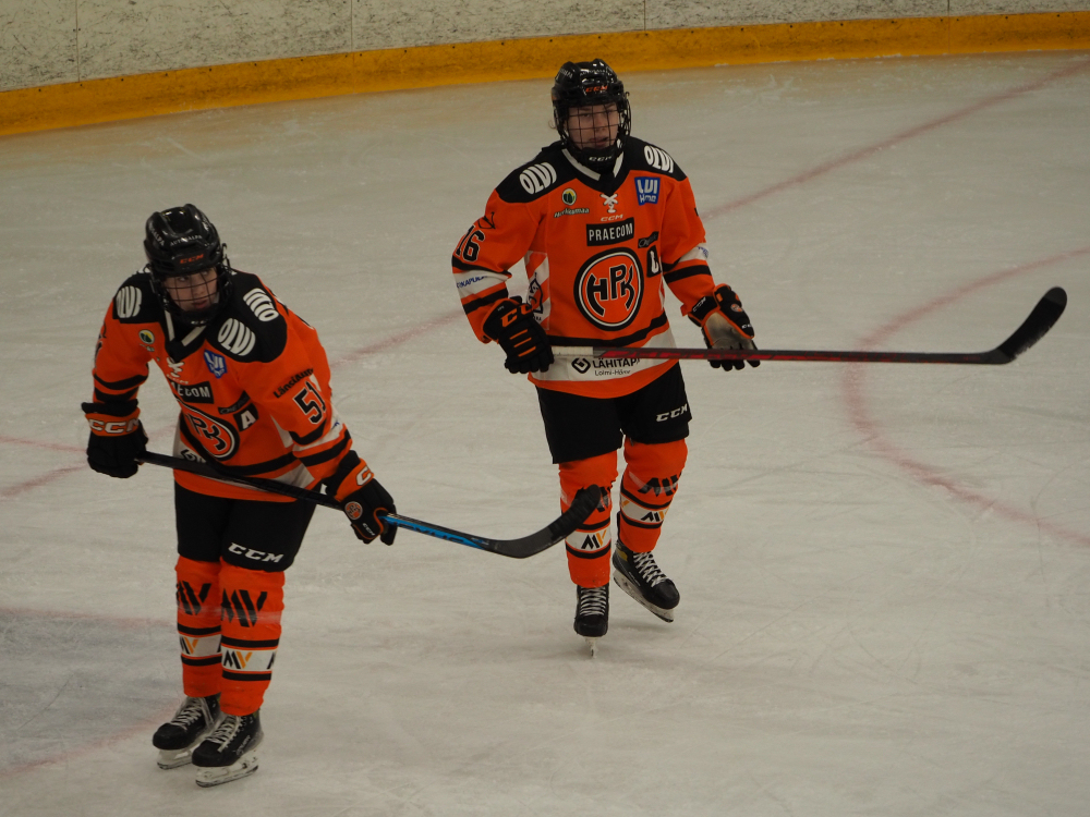 HPK:n naisjoukkueen kantava sisarkaksikko Kiti ja Heta Seikkula. Kuva kauden 2023-2024 pronssiottelusta Hämeenlinnan Metritisti-areenalta.