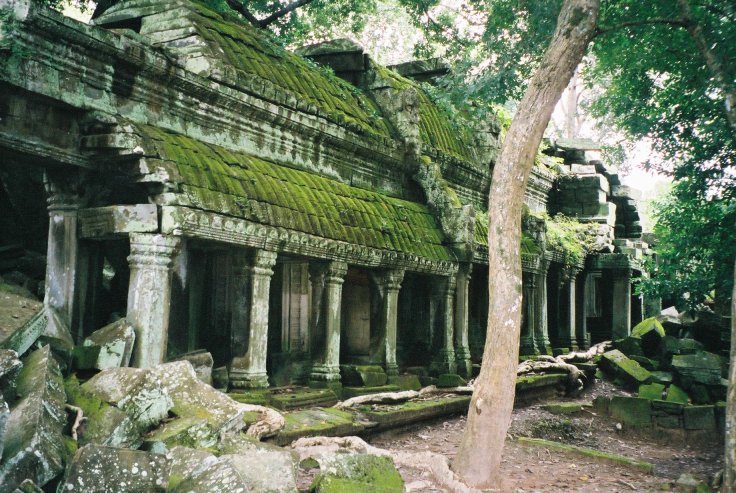 Ta Prohm. Monia Angkorin temppeleitä ja alueita on alettu kunnostamaan, mutta Ta Prohm on jätetty sellaiseksi kuin se ranskalaisen tutkimusmatkailijan Henri Mouhot'n löytäessä vuonna 1860 oli. SIEM REAP, KAMBODŽA