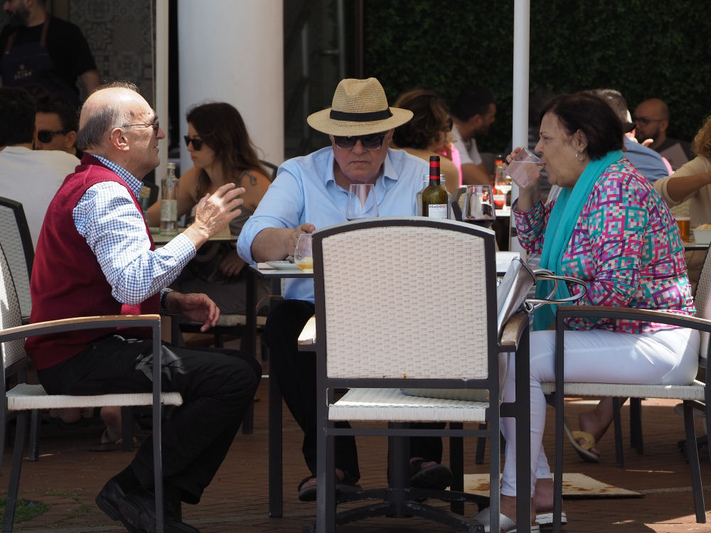 Tyylikkäät ihmiset alkoholipitoisella brunssilla.