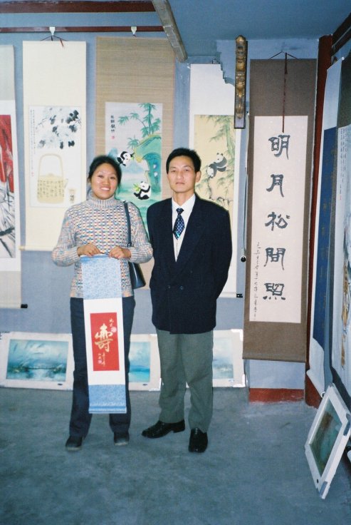 Tapasin sattumalta taideopiskelija Yunin ja lähdin katsomaan ateljeeta, jossa hän mestarinsa kanssa opiskelee. Yunin käsissään pitelemän kalligrafin sain lähteissä mukaani. PEKING, KIINA