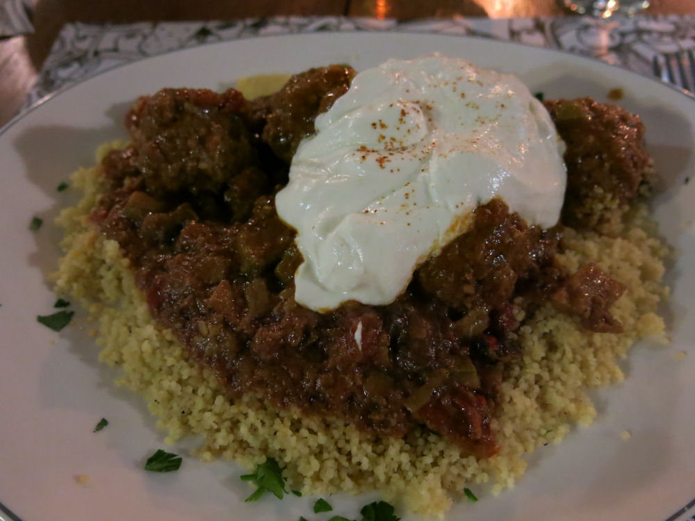 Lampaanlihapullat kuskus-pedillä. Yksi reissun parhaista annoksista. (Portes Restaurant, Akti Papanikoli 1, Chania). HANIA