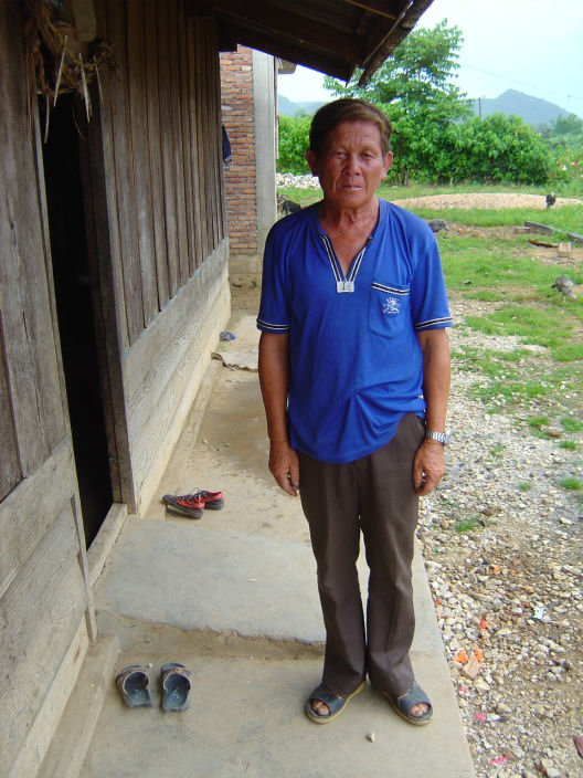 Kylän shamaani. Äijällä meni rautalangat navetan katosta kohti taivasta. Kuuma linja? Lääkäritkin Thaimaan puolelta olivat käyneet katsomassa kuinka ukko parantaa sairaita, kertoivat. Outoa touhua...? XIENG KHOUANG, LAOS