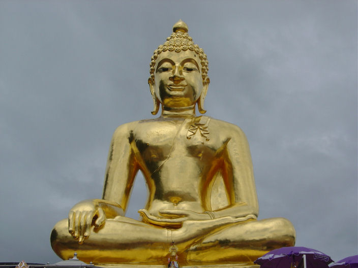 Valtava kultainen Buddha valvoo rajaseutua Kultaisella kolmiolla.