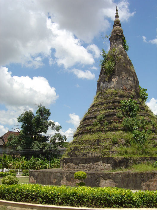 That Dam (Black Stupa). Yksi Vientianen vanhimmista monumenteista, n. 1400-luvulta. Legendan mukaan Stupa on Nagan, seitsenpäisen lohikäärmeen, lepopaikka. Naga suojasi kansalaisia Thai-miehityksen aikana. VIENTIANE, LAOS