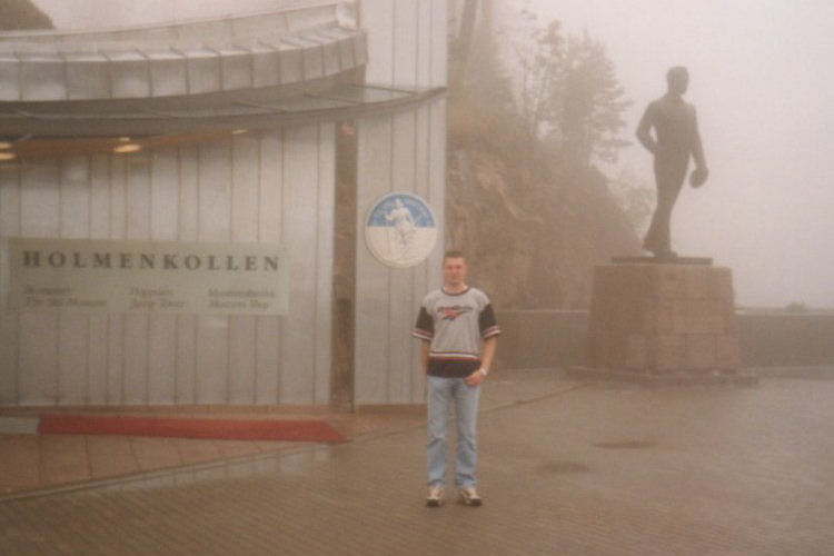 Holmenkollenin hiihtomuseo. Yhtä sankka sumu kuin vuonna 1982 Matti Nykäsen voittaessa täällä suurmäen maailmanmestaruuden. OSLO 1999