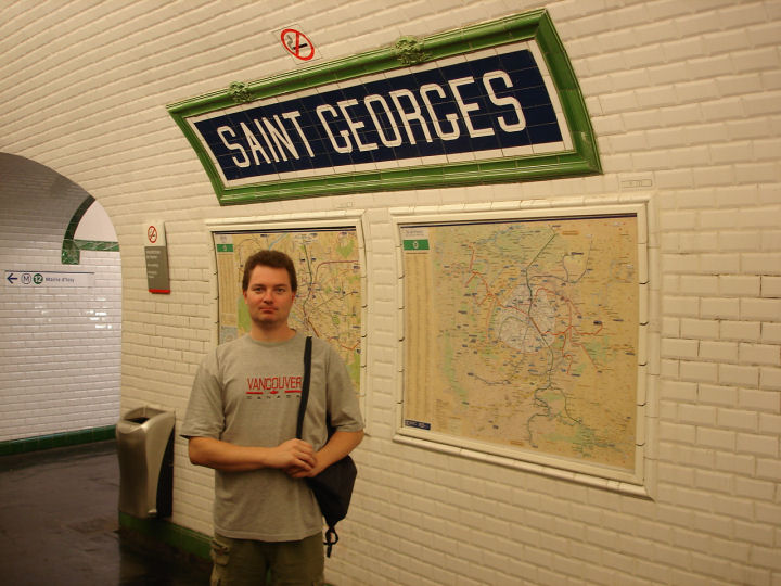 Saint Georgesin metroasemalla. Metro toimii Pariisissa loistavasti. Kyyti on halpaa ja verkosto kattaa lähes koko keskustan alueen.