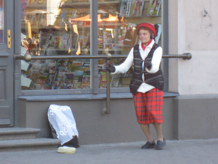 Mummu tanssahteli samassa kadunkulmassa aamusta iltahämärään. Jollain se on mummunkin elanto ansaittava.