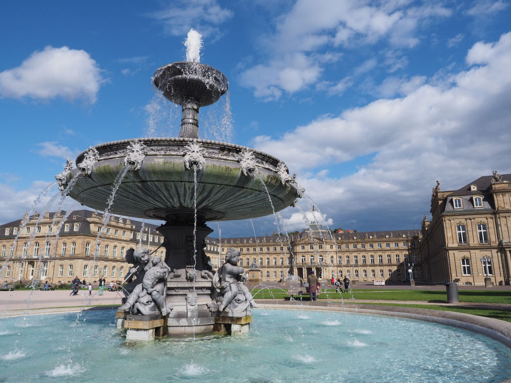 Neues Schloss hallitsee Schlossplatzia ja koko keskustaa.