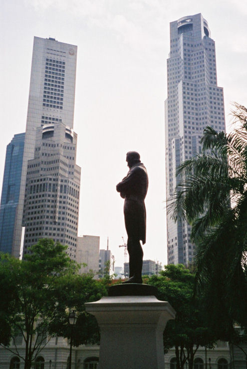 Kaupungin perustajan Sir Stamford Rafflesin patsas.