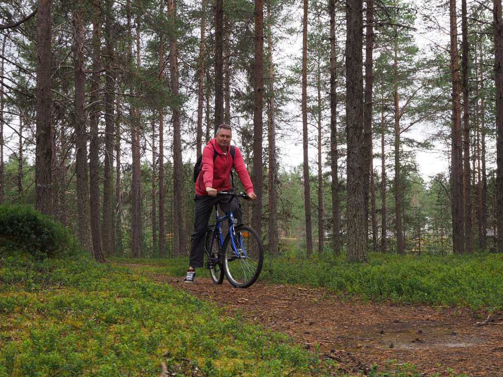 Maastopyöräilypolut lähtivät heti hotellin pihasta. Tänä vuonna tulikin pyöräiltyä useampi kymmenen kilometriä. KUUSAMO