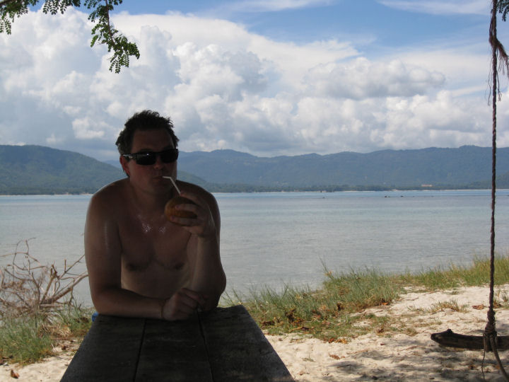 Kookospanos ja komea miesvartalo.