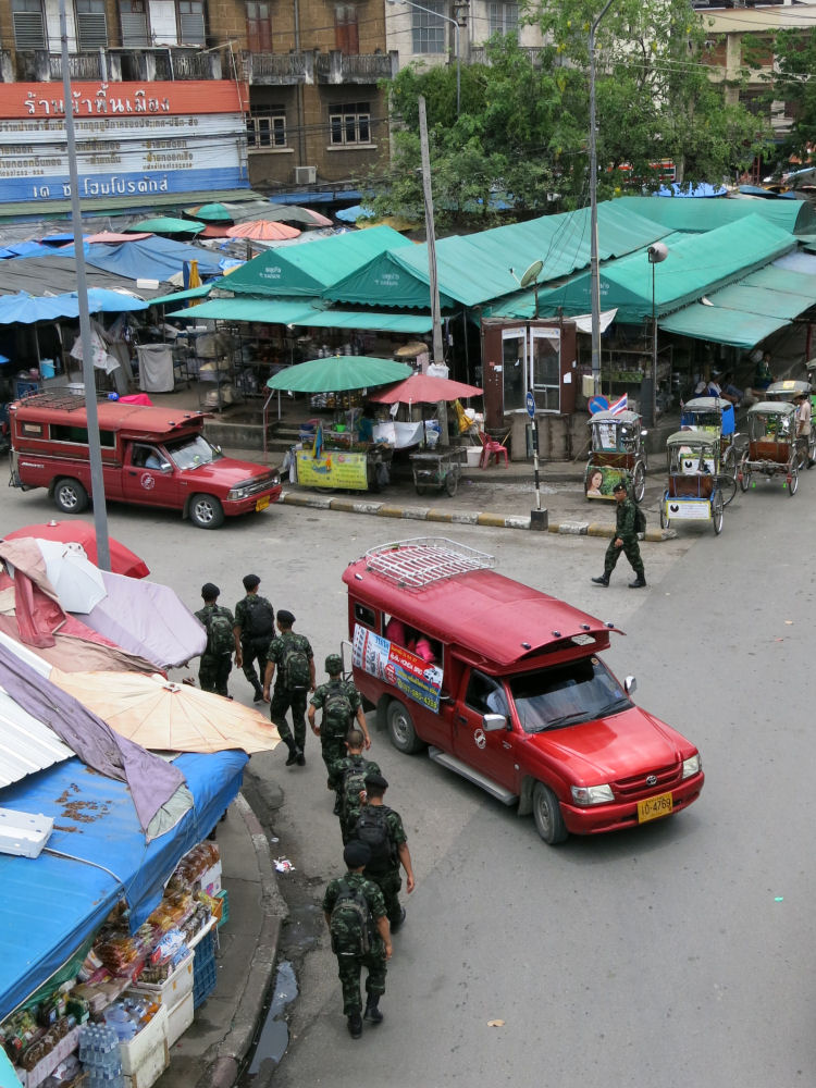 Poikkeustila ei muuten juuri näkynyt katukuvassa, mutta Chiang Maissa oli kyllä normaalia enemmän sotilaita liikkeellä. CHIANG MAI