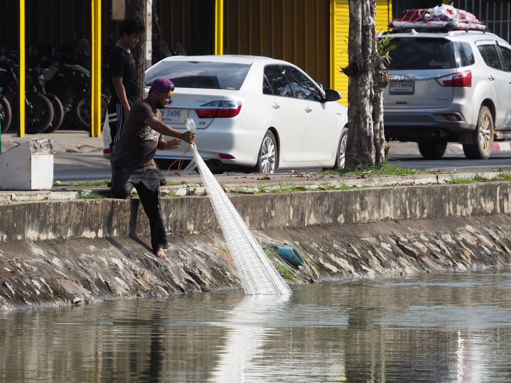 Jäppiset verkkokalastivat keskustan paskaisessa kanavassa.