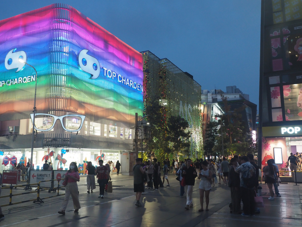 Erittäin vilkas paikallisten ostoskatu Siamin ilmajuna-aseman takana.