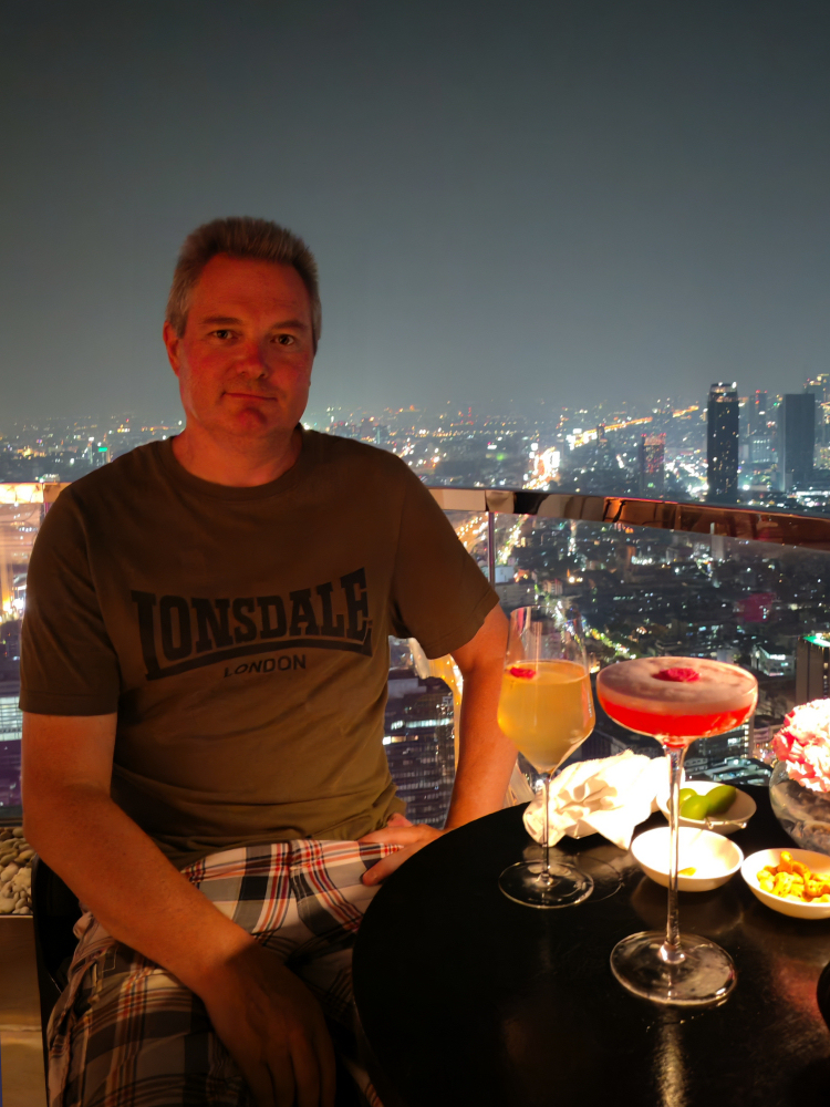 Pink Bar. Onneksi talo tarjosi. Muuten nuokin kaksi drinkkiä olisi maksaneet liki 100 euroa. Tässä vaiheessa lomaa se olisi ollut meille tekemätön paikka... BTW. Isot vihreät oliivit olivat parhaita oliiveja mitä olen ikinä syönyt! BANGKOK