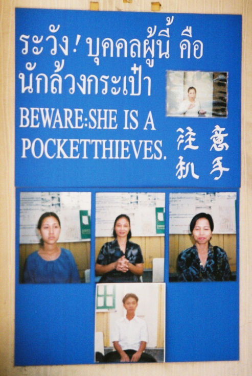 Taskuvarkaista varoittava taulu.