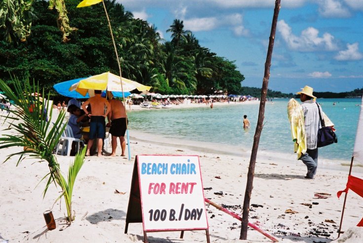 Hat Chaweng. Paluu melko kalliista Singaporesta Malesian kautta halpaan rantaelämään Thaimaassa. Rantatuolikin koko päiväksi vain reilut pari euroa. KO SAMUI, THAIMAA