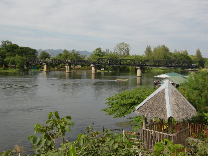 Kwai-joen silta. Silta on tosin uudelleen rakennettu hieman eri paikkaan missä alkuperäinen puusilta sijaitsi. KANCHANABURI