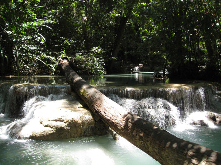Erawanin luonnonpuiston seitsenkerroksisen vesiputouksen ensimmäinen taso.