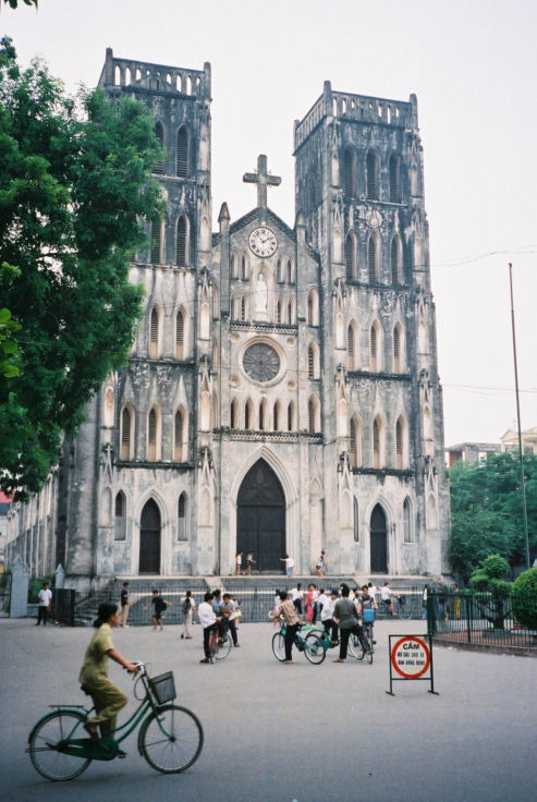 Aivan hotellin vieressä sijainnut Nha Tho Lon katedraali. Pojat pelasivat katedraalin edustalla jalkapalloa aamusta iltaan. HANOI, VIETNAM