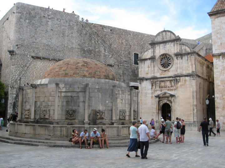 Onofrion lähde. Sanotaan, että joka haluaa löytää elämänsä rakkauden, hänen tulee juoda lähteen kaikista 16 hanasta. DUBROVNIK, KROATIA