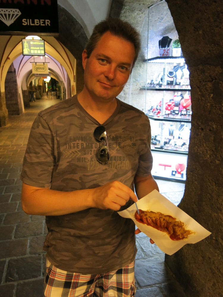 Currywurstit piti säästää Saksan puolelle, mutta kun nyt koju osui kohdalle, niin maistettiin. INNSBRUCK, ITÄVALTA
