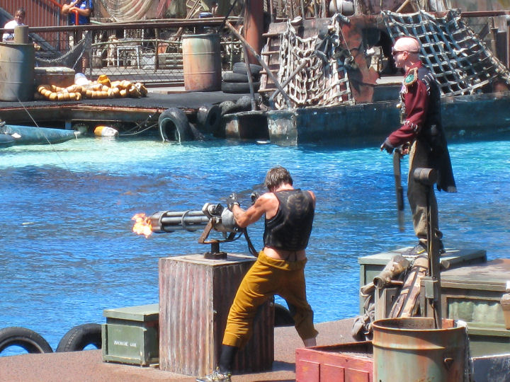 Waterworld lavasteet. Ja välillä ammutaan.