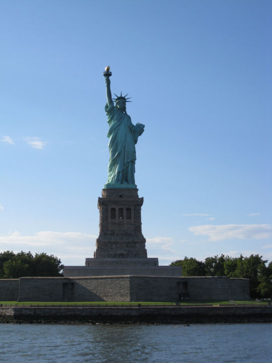 Patsas sijaitsee Liberty Islandin saarella New Yorkiin johtavan laivaväylän varrella. Se esittää vapauden jumalatarta kädessään vapauden soihtu ja itsenäisyysjulistuskirja.
