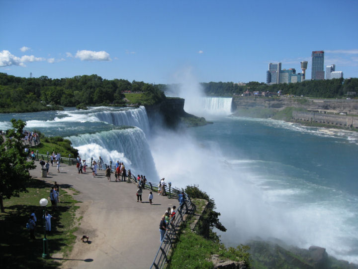 Niagaran putoukset. Joessa kulkee USA:n ja Kanadan välinen raja. Kanada joen oikealla puolella. NIAGARA FALLS