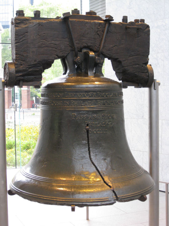 Liberty Bell. Ajan saatossa monta kertaa haljennut kello on Yhdysvaltain vapaussodan symboli. PHILADELPHIA