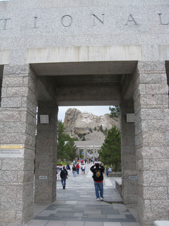 Mount Rushmore National Memorial. Jokaisen alikulun jälkeen muistomerkki avautuu enemmän. MOUNT RUSHMORE