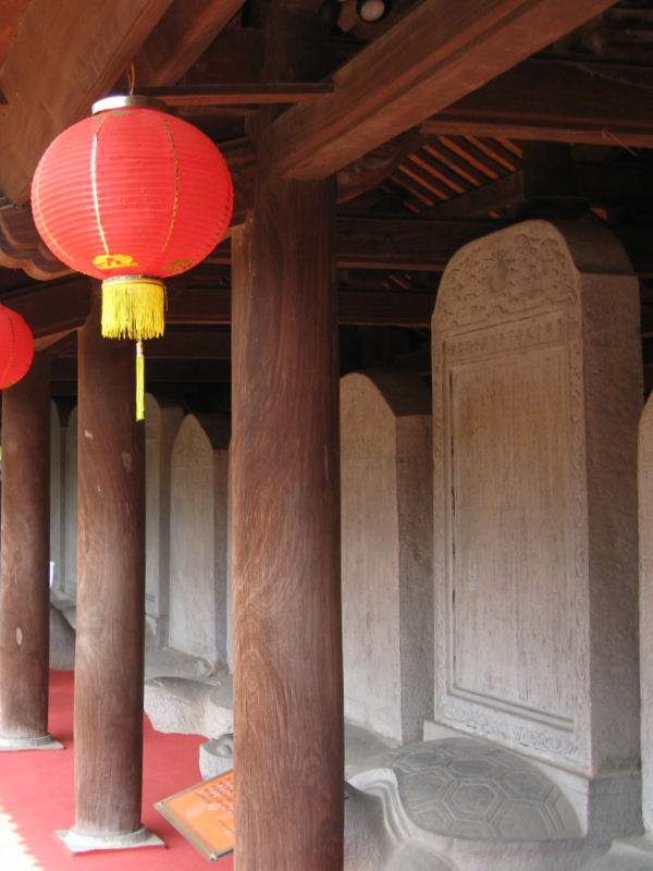 Kirjallisuuden temppeli Van Mieu. Temppelin yliopistosta valmistuneiden tohtoreiden nimiä kivitauluissa kilpikonnien selässä. HANOI, VIETNAM
