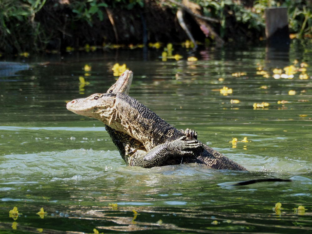 Lumpini-puisto. Lammenpoukamasta alkoi kuulua melkoinen mulaaminen. Ensin luulin, että tappelevat, mutta jonkinlaiset soidinmenot ne taisikin vaan olla. BANGKOK