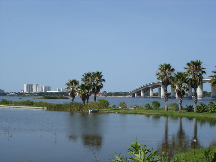 Pitkä silta mantereelta Daytona Beachin ulkosaarelle.