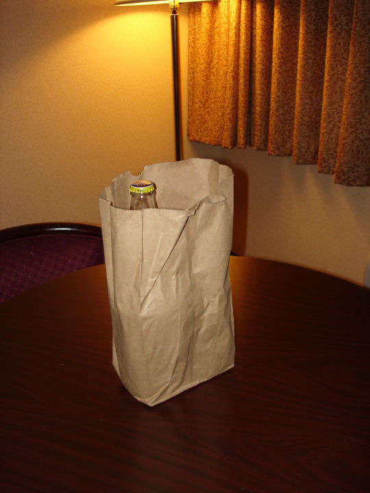 Yksikin huoltoasemalta ostettu kalja pakataan paperipussiin.