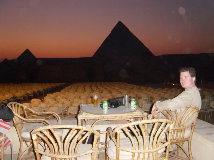 Jäätiin odottelemaan pyramidien valoshowta hyvissä ajoin.